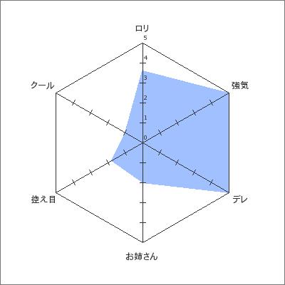 PR Ragna Archives Network 様にて好きなキャラと属性を診断できるというものを以前にしたことがありますが、それの第2弾と言ったところです。以前よりもキャラ数、その他の機能等も増え充実してきたのでまたやってみましたよヽ(´ー`)ノ まずは私の好きなキャラから…(こちらをクリック) …見ていただいたら分かりますが、やはり1位は「けよりな」の麻衣なのは代わりありません。なんせ私の彼女ですから(ぉ 2位は以前登録したときにはなかった「よつのは」でお馴染みのののさんが上位に入っています。ののさんはロリキャラ好きな人ならほとんどの人が選んでるのではないかな~とは思いますね。 そして3位以降は順位変動はあまりありませんが、4位に「あえかなる世界の終わりに」のリップル、10位に「東鳩2」の由真、11位にエルルゥが入ったぐらいですかね。 リップルも以前登録した際にはいなかったので上位は確定していました。 そして東鳩の由真を入れたら…「お前東鳩嫌いじゃないのか?」とお思いになる方もいると思いますが、キャラ自体は好きなので入ってます。 エルルゥも以前登録した際にはなったのですが、順位がどこに入れるか悩んだ結果微妙な11位に(ぉ そして以前の様に、これらのキャラを選択した際に分かる自分の好きな属性というのがでます。まぁロリ思想の私には以前とあまり変わらないグラフだろうな~と安易に考えていたんですが… ……… …… …