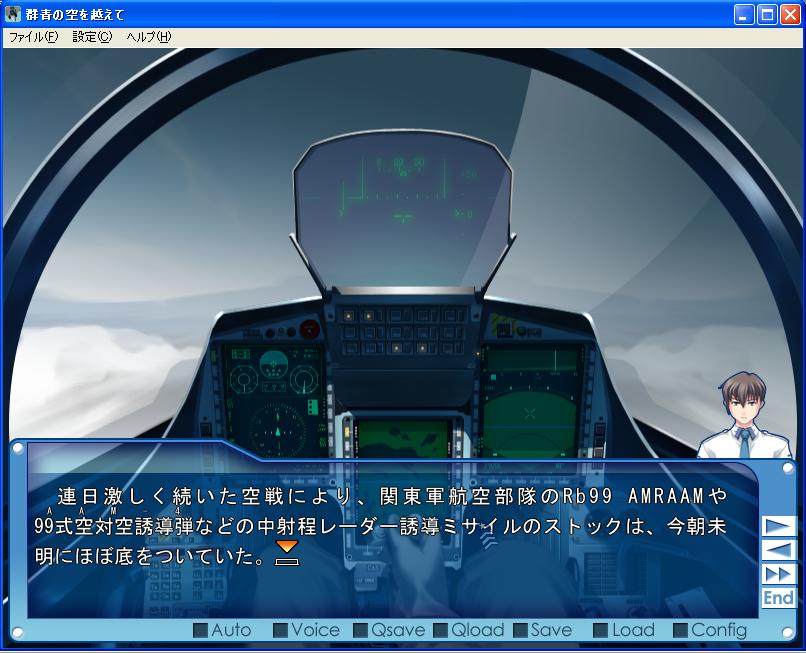 Web拍手、コメントへの返信 ・群青、テキスト難しいですよね 戦闘機の知識が全くない僕にはハードでした。そして積みゲーへ・・・いつかはやりたいのですが・・・by ボブ ・俺はエヴァ2では40万近く稼がせてもらいましたね~♪ 今日は朝に眠気が来ないので、パチンコに行ってまいりました。 エヴァ2が空いていたのでとりあえず回してみるかな~って程度で始めたのですが5000円でかかりましたよ。 しかも確変突入と来たのでそのまま打ってたら最終的に1万6千円分の利益がでましたよヽ(´ー`)ノ これでプリズムアークが買えるので残った金はどうしようかなぁ~と思ったんですが、体が勝手に日本橋に向けて動いてるではありませんか(何 気づいたら駅に着いていたのでとりあえず祖父地図へ。 店内をブラブラしていたのですが、「群青の空を越えて」が置いてあるのを見つけると、即レジへ(ぉ 昔からやりたいとは思ってたのですが、コストを下げるために中古でエロゲーを買うようにしてるので見つからなかったらプレイできないといったことになっていたので、今回は金があるからという理由で購入しちゃいましたね。 早速家に帰ってインスト開始( ^ω^) (プレイ中) ……… …… … ………話を進めて行くに連れてテキストを理解ができません('A`)