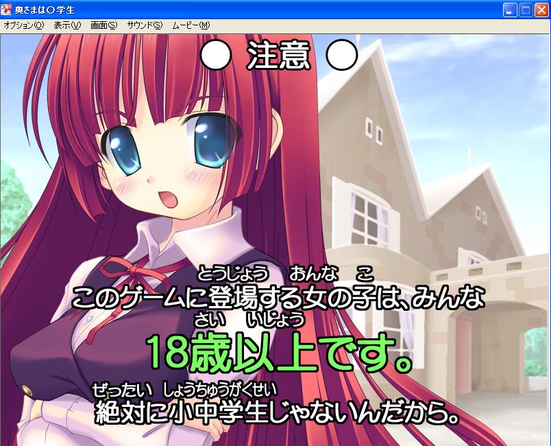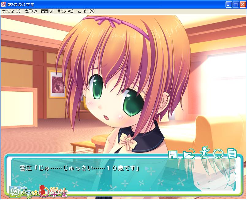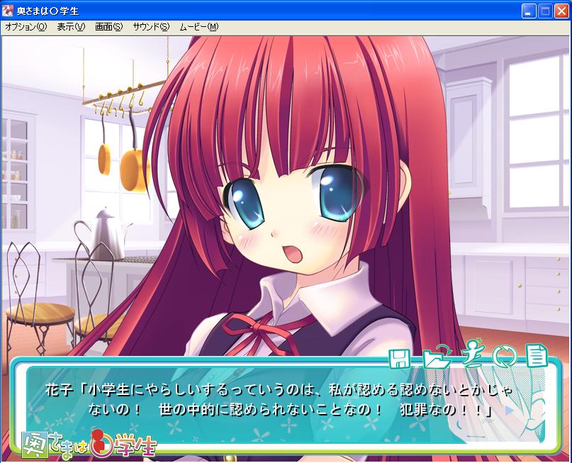 コメントへの返信 ・危険な香りが漂うゲームですねー。 ・ ちゃんと「エロゲー」になっているのでしょうか? お二方コメントありがとうございました(´・ω・`) 私立さくらんぼ小学校の作品である「奥さんは○学生」をプレイ中です。 まず私立さくらんぼ小学校というメーカーは… ロ リ(小 学 生) を 専 門 に 扱 っ た メ ー カ ー で す !(ぉ さすがに小学生はどうかな~…と購入するときに思ったのですが(まぁ買ったのは友人ですが) レ ビ ュ ー を す る も の と し て は 一 度 は や る べ き だ !(何 と思ったので買っちゃいましたよ(いいわけですが何か まず早速プレイしてみると…