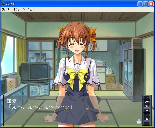 さっそくそらうたをプレイ中なのですが… インストする際にディスク容量が5,61Gというのにかなりびびりましたよ!!!! その割りにインストされたデータ量は1,11Gしかないのはどうしてなんだろ… まぁプレイしてるわけですが… 知夏がかわいすぎなんですが!!(*´Д`)'`ァ'`ァ こんな積極的でいい子がなぜこんな主人公にと思うぐらいでしたね。個人的な嫁ランキング(?)1位であるけよりな(夜明け前より瑠璃色な)の麻衣に迫るぐらいの勢いですよ。
