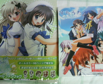 (画像小さくて汚いのは勘弁してください) ・青空の見える丘ビジュアルファンブック となっております。 青空の見える丘は狙っていたけど買うのを忘れ続けていたのでついに購入って感じですね。 そらうたは正直古いと思われてもしょうがないような作品ですが… 私 に は 思 い 入 れ が あ る ん で す よ ! ゲーム雑誌を見てはじめてほしいと思ったのがこの作品だったのでなんとなく印象に残ってたんですよねぇ。 まぁ3Daysとどちらを購入するかは悩みましたが(何 まぁどうでもいい話なんですが、買い物をしてる時って基本的に誰か一緒にいてる人(友達とか)が多いのをよく見ますが… 私 に も そ ん な 友 達 が ほ し い (´д⊂ 友人が基本的に非オタばっかりなので一緒にエロゲーとか買いに行く友人がうらやましいと思いますね。 求)一緒に日本橋にいってくれる友人…。見つからないかなぁ( ´_ゝ`)